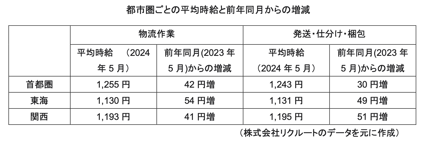 コラム「企業の人手不足進む」vol.2物流関連のアルバイト・パートさんの時給増続く〜2024年5月度の「アルバイト・パート募集時平均時給調査(三大都市圏)」結果を発表(株式会社リクルートの調査研究機関『ジョブズリサーチセンター(JBRC)』調査より)〜
