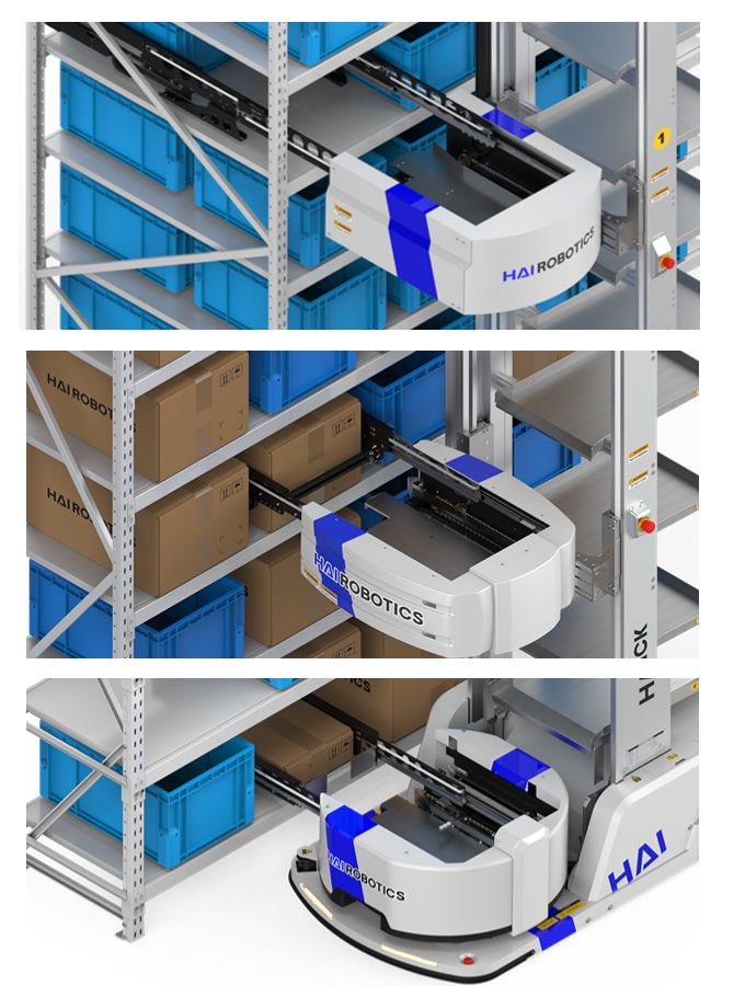ด้วยถาดเก็บของหลายชั้น หุ่นยนต์การเก็บเวราส์เฮ้าส์ของเราสามารถจัดการกับกล่องได้สูงสุด 9 กล่องพร้อมกัน ซึ่งเพิ่มประสิทธิภาพในการเก็บเวราส์เฮ้าส์อย่างมาก